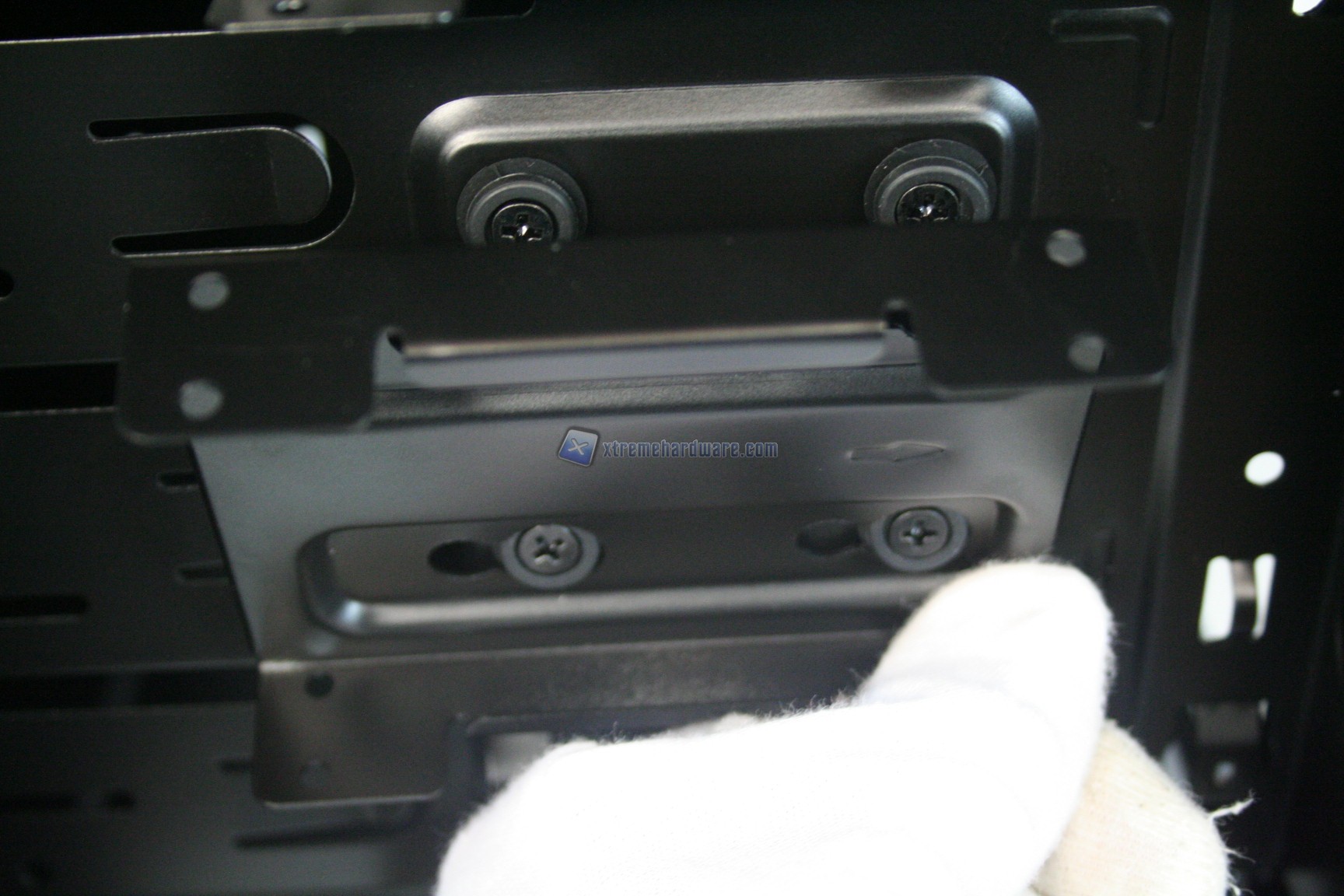 Per quanto riguarda le periferiche da 5.25” c’è un sistema proprietario che permette un installazione immediata. In sostanza bisogna semplicemente rimuovere il plate anteriore e far scorrere l’unità, si bloccherà automaticamente! Qualora fosse presente un fan controller con fori di plastica però sarà necessario l’utilizzo della classica viteria, e qui le cose si complicano perché sarà possibile avvitare solo da destra.